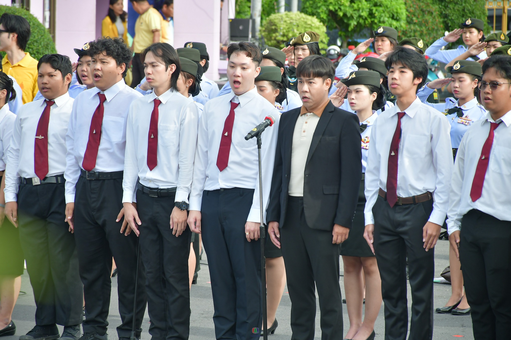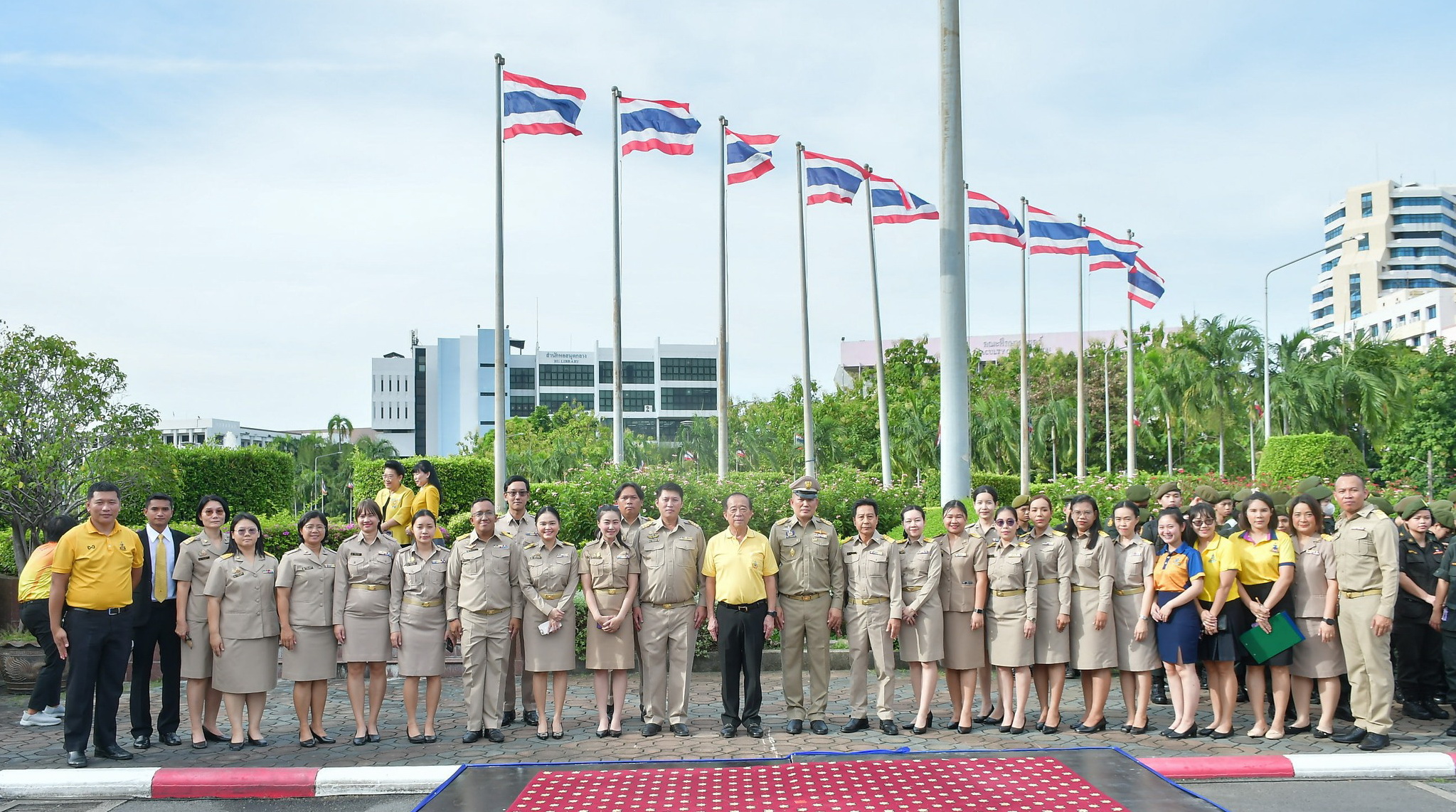 คณะผู้บริหาร และบุคลากรกองกิจการนักศึกษา เข้าร่วมพิธีเคารพธงชาติและร้องเพลงชาติไทย